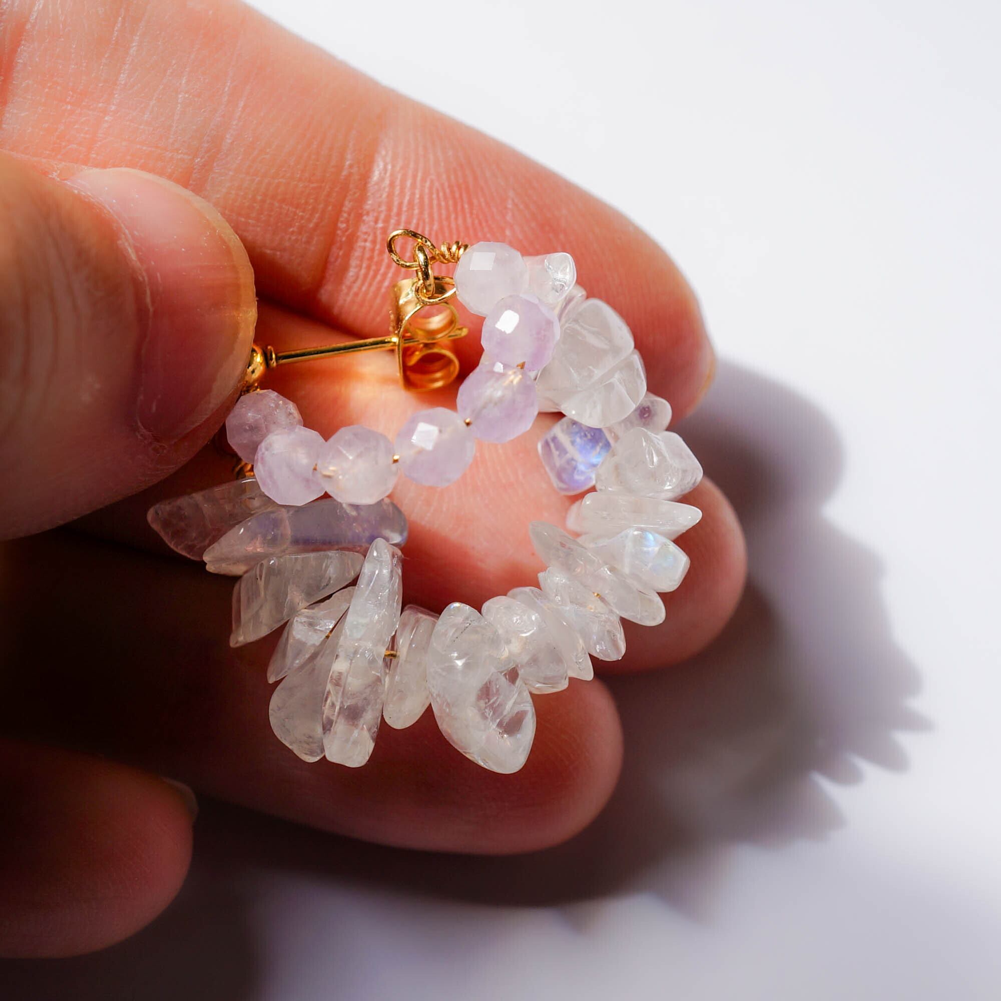 レインボームーンストーンのさざれなので、角度によって青やオレンジなどのシラーが浮かぶのがとっても綺麗です!