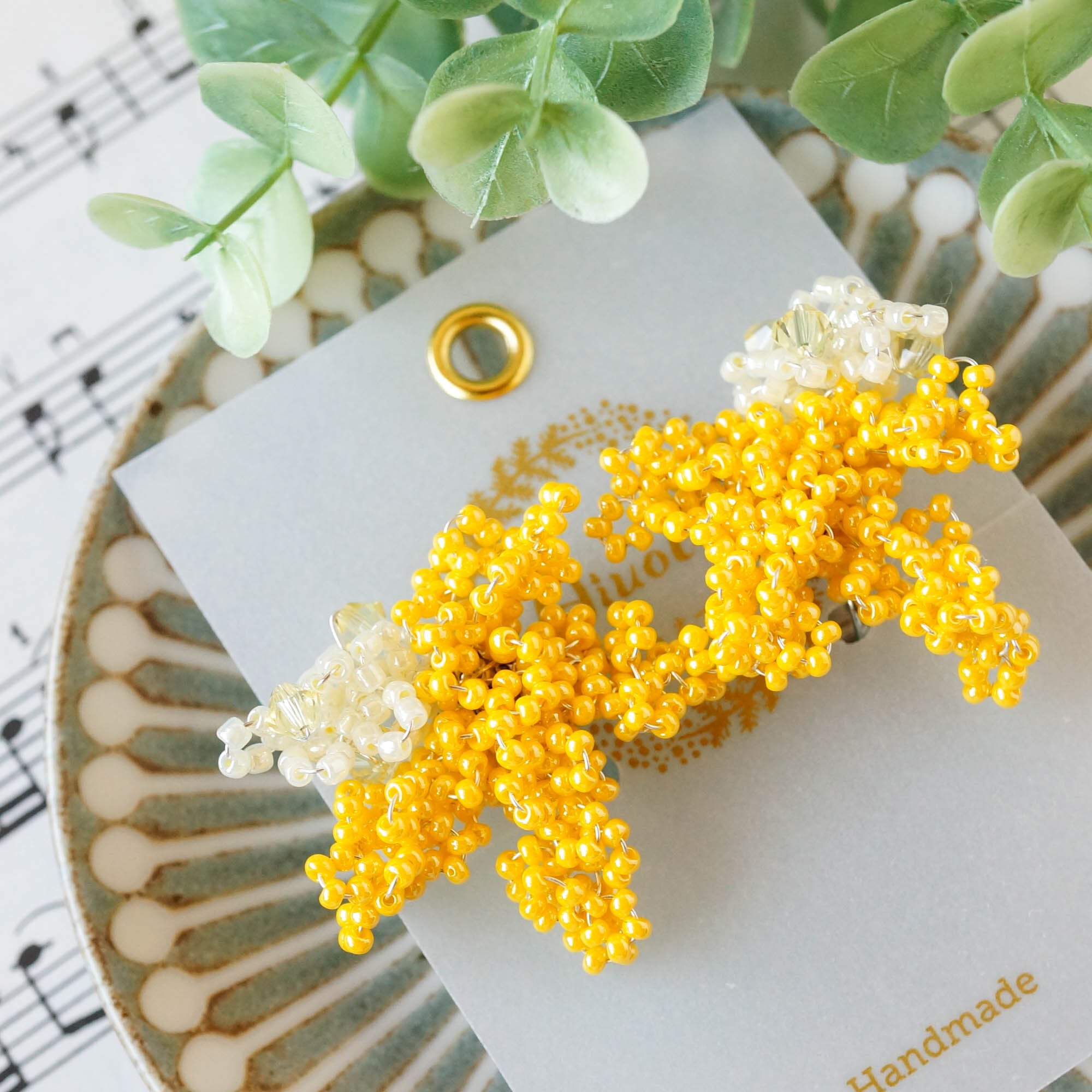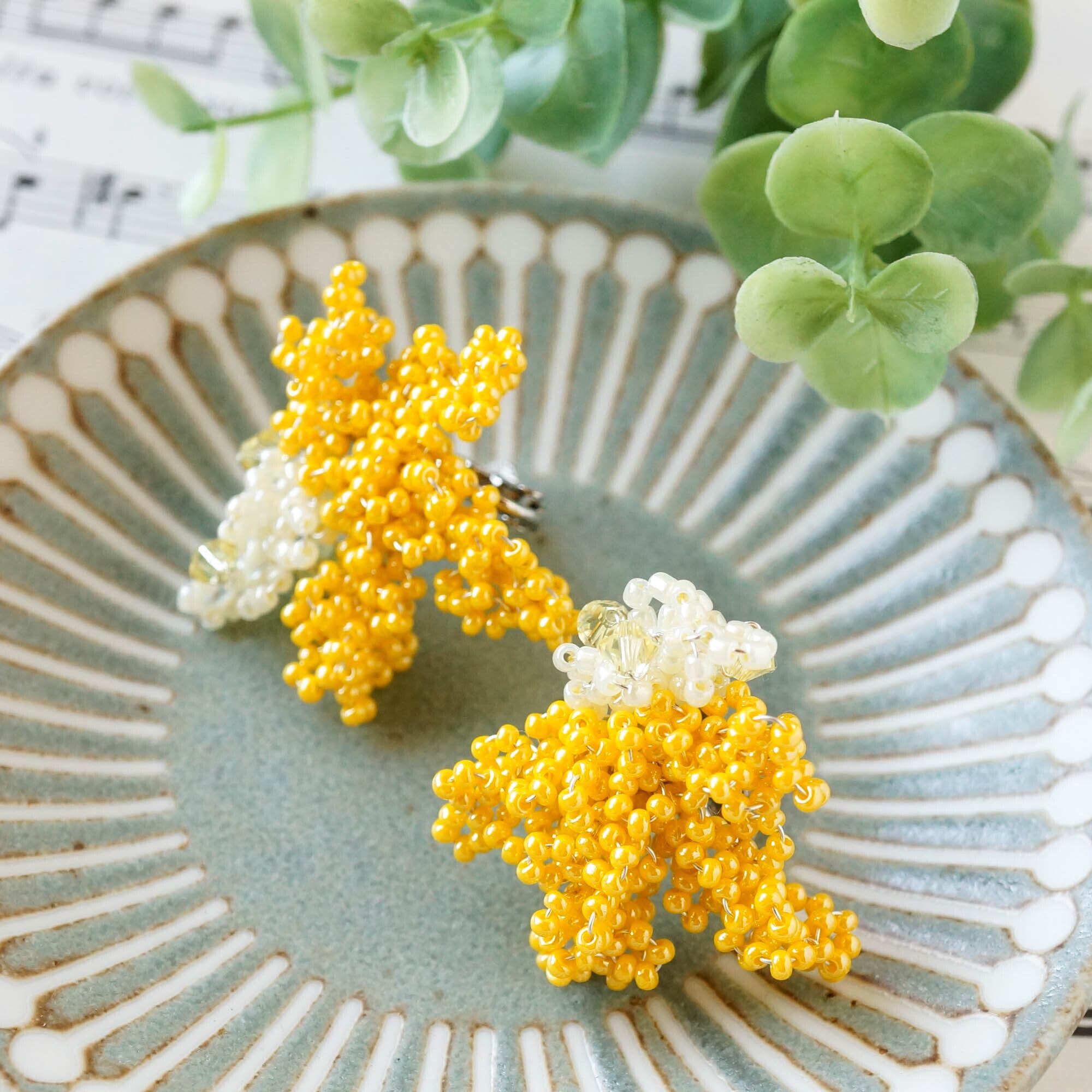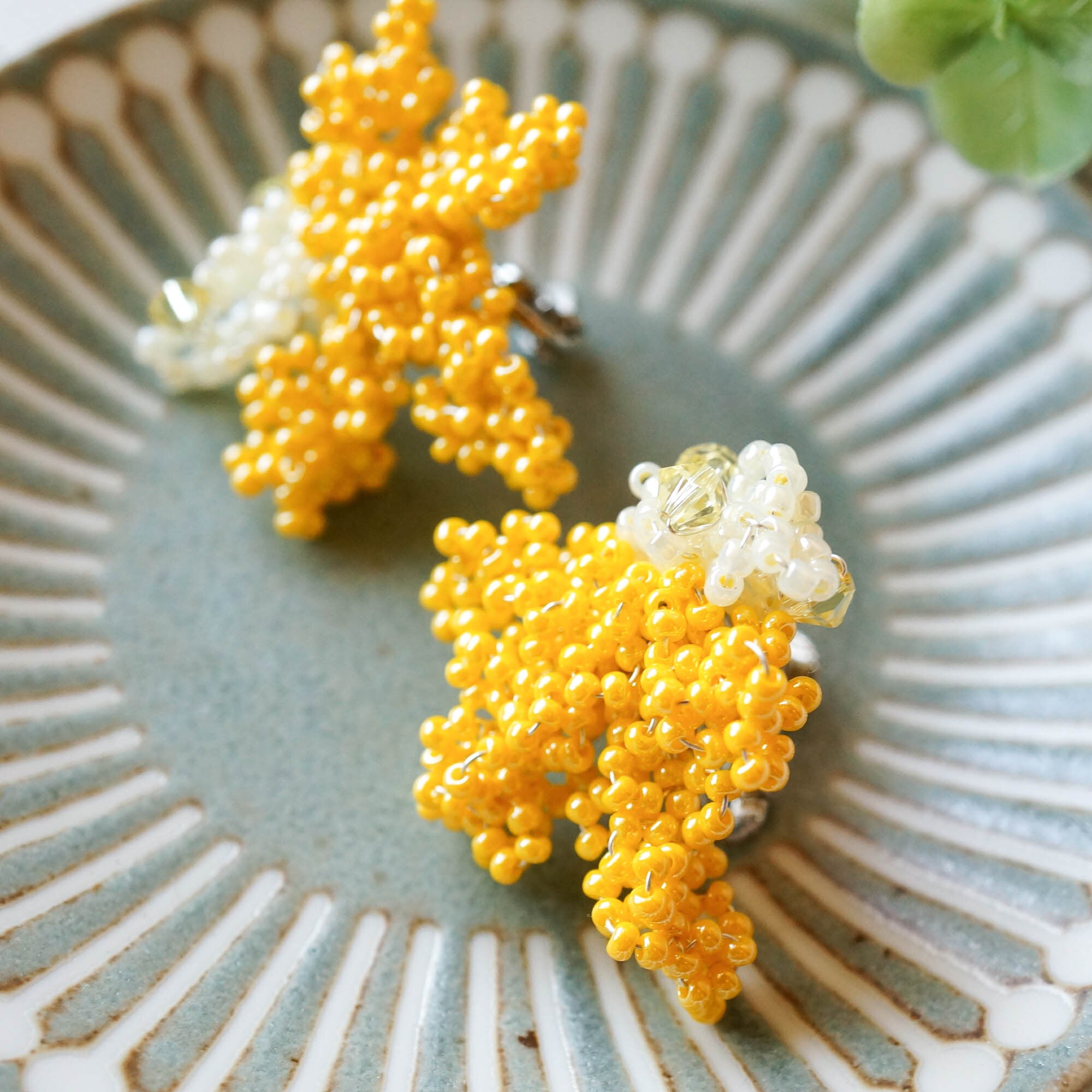 花たちの彩りを大胆な色づかいで表すKukkaシリーズより、こんもりミモザのイヤリングが登場です!