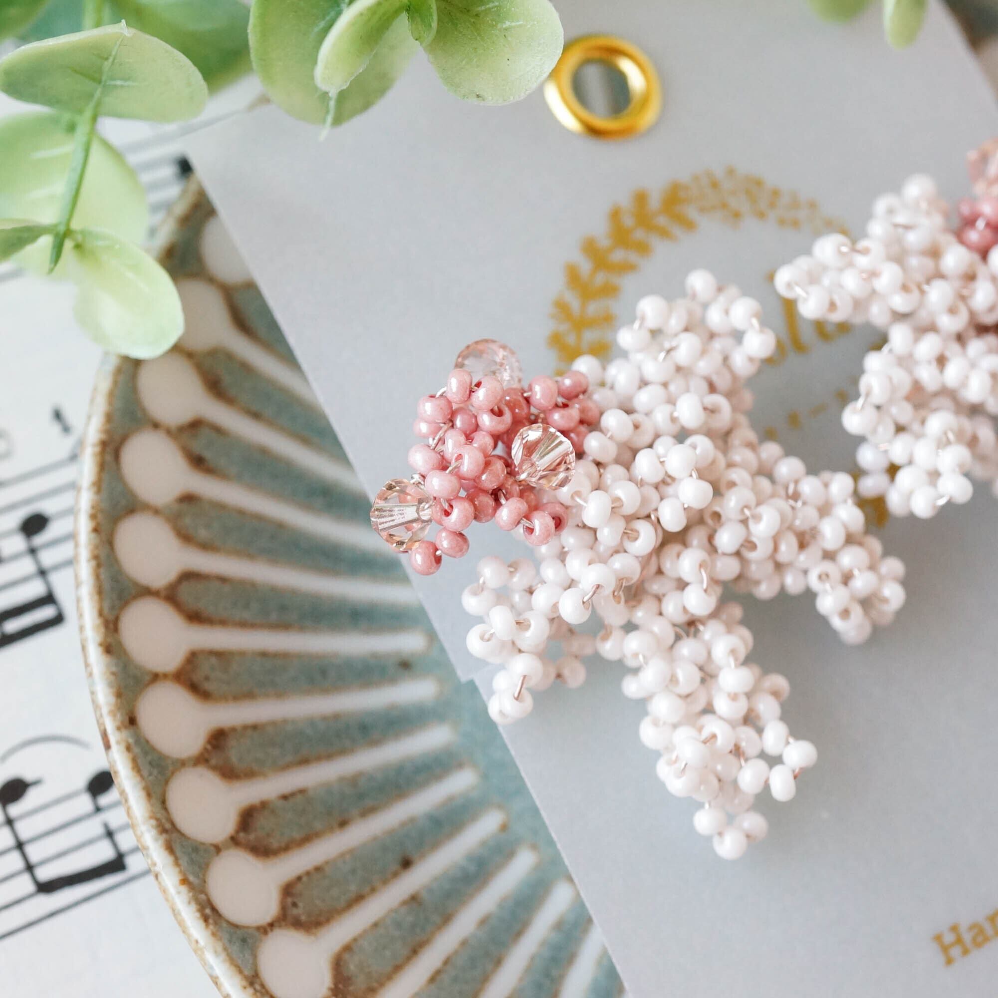花たちの彩りを大胆な色づかいで表すKukkaシリーズより、こんもりサクラのイヤリングが登場です!