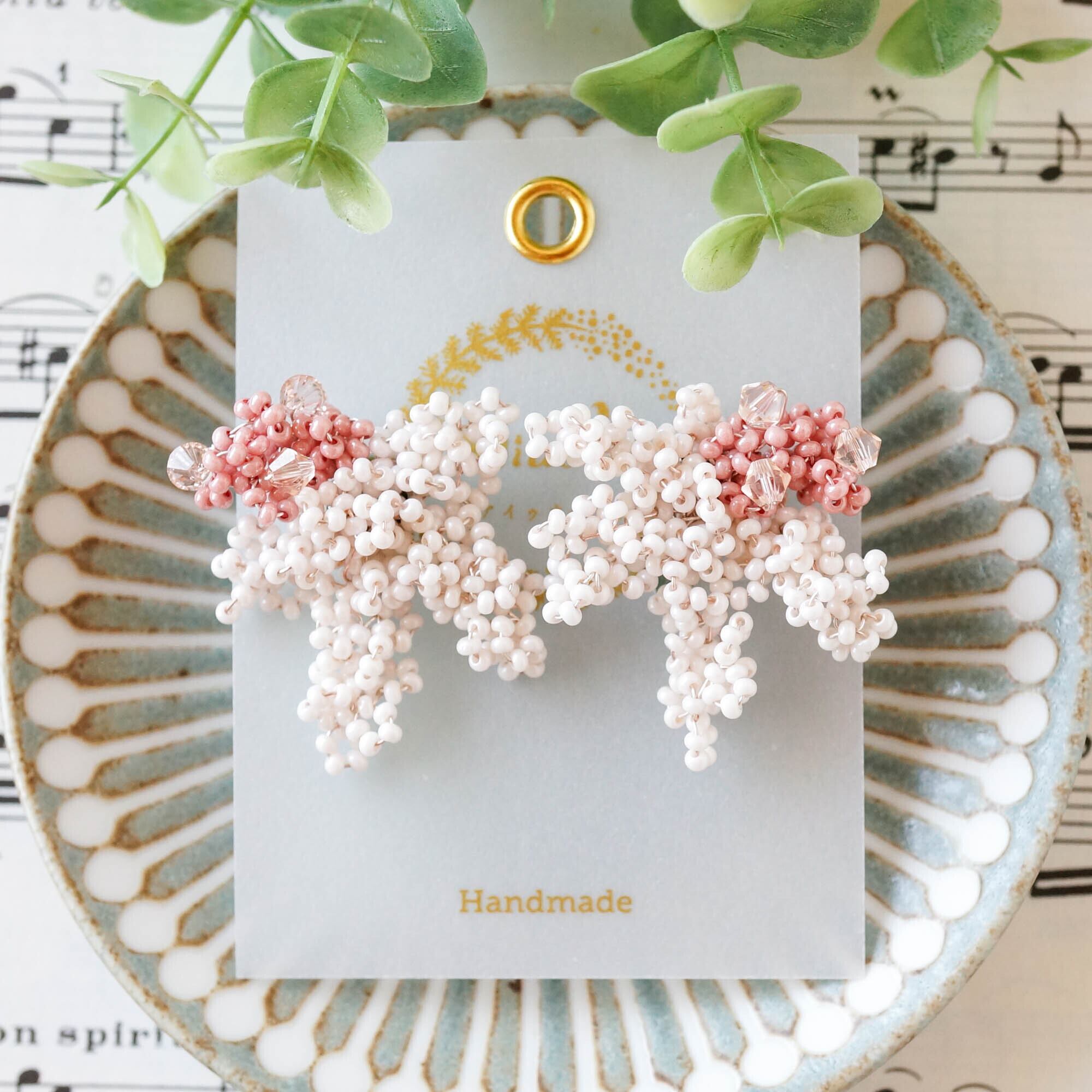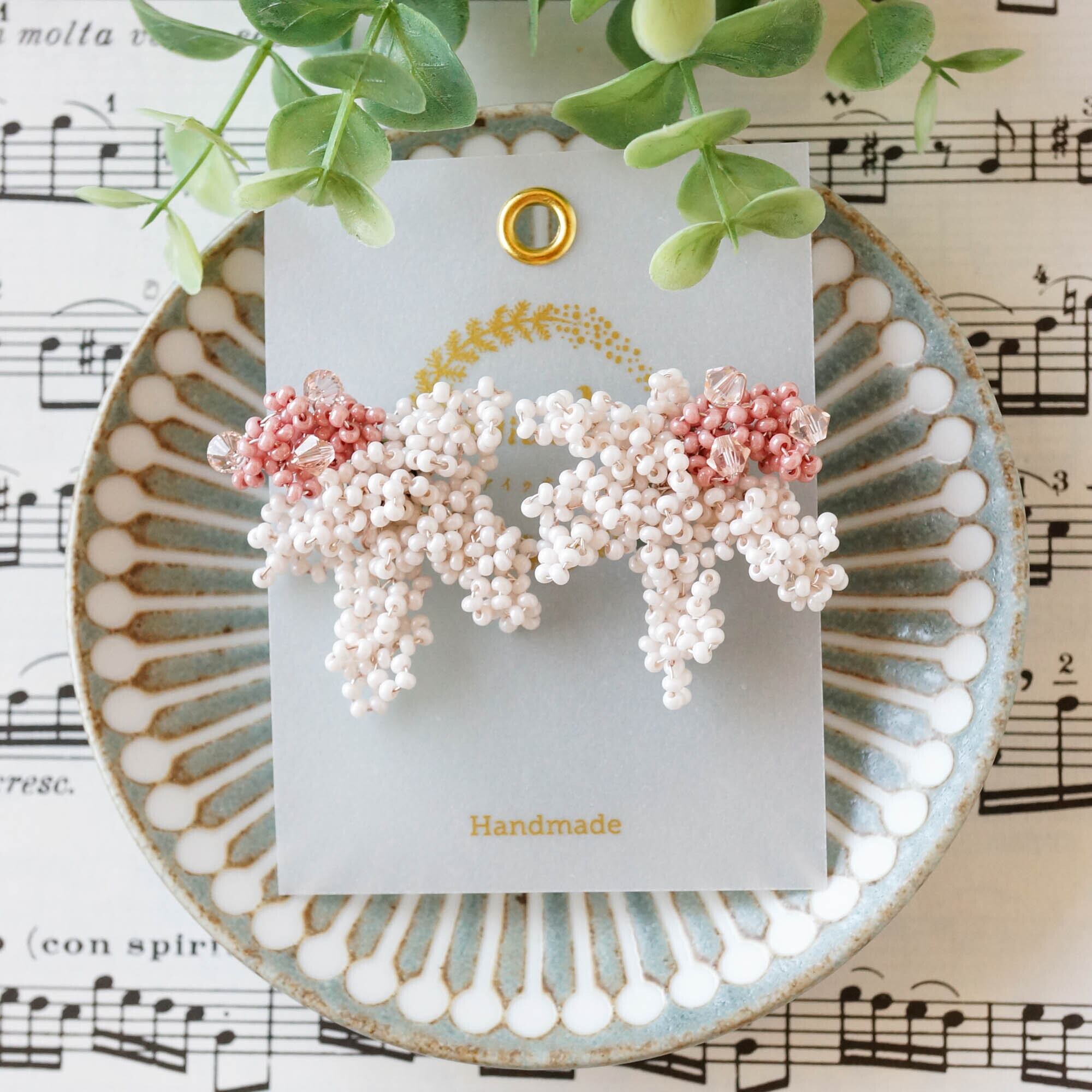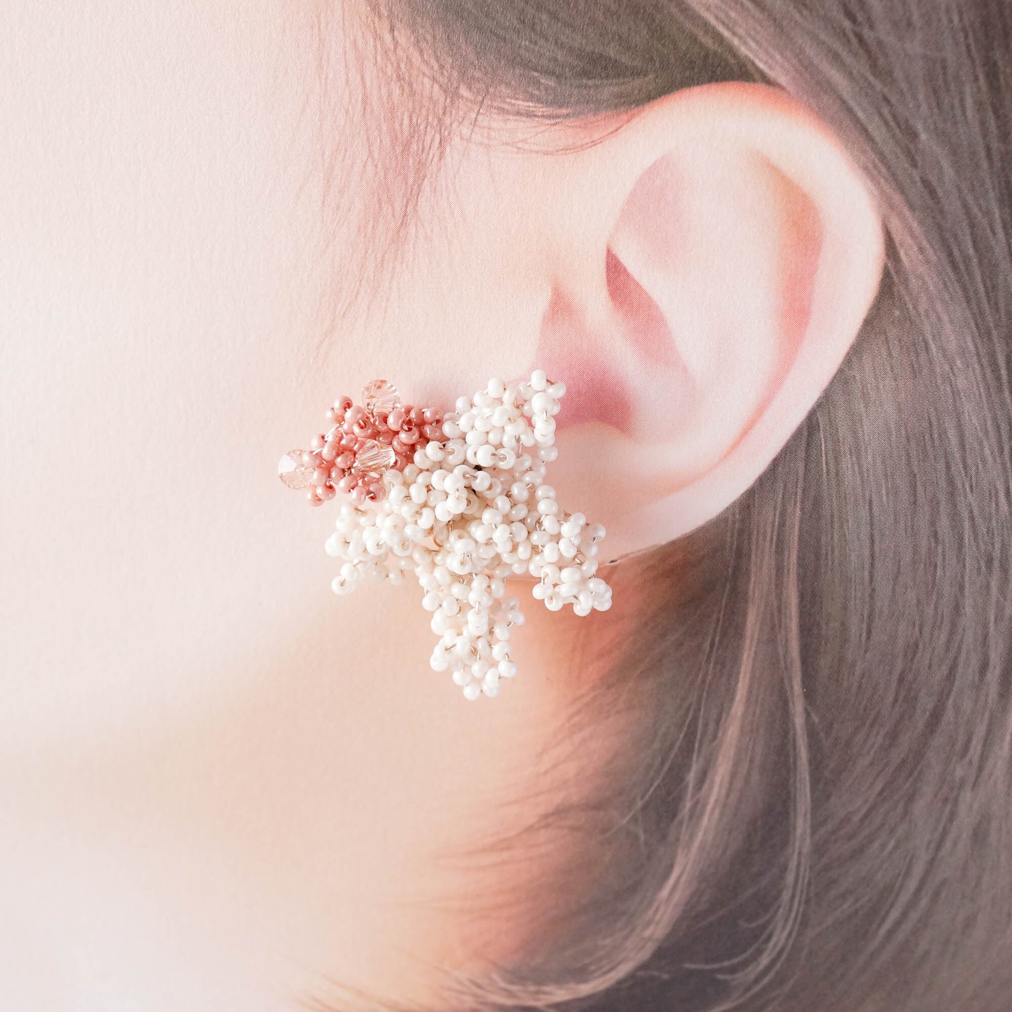 モチーフに使われているビーズはなんと片耳300粒以上。