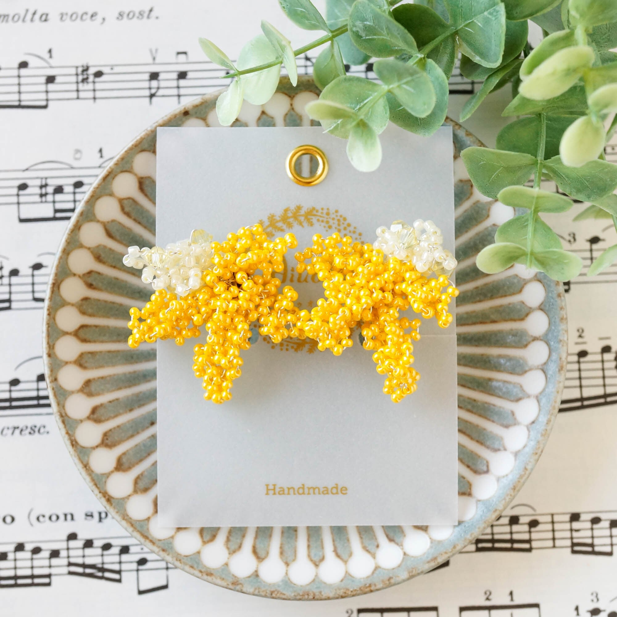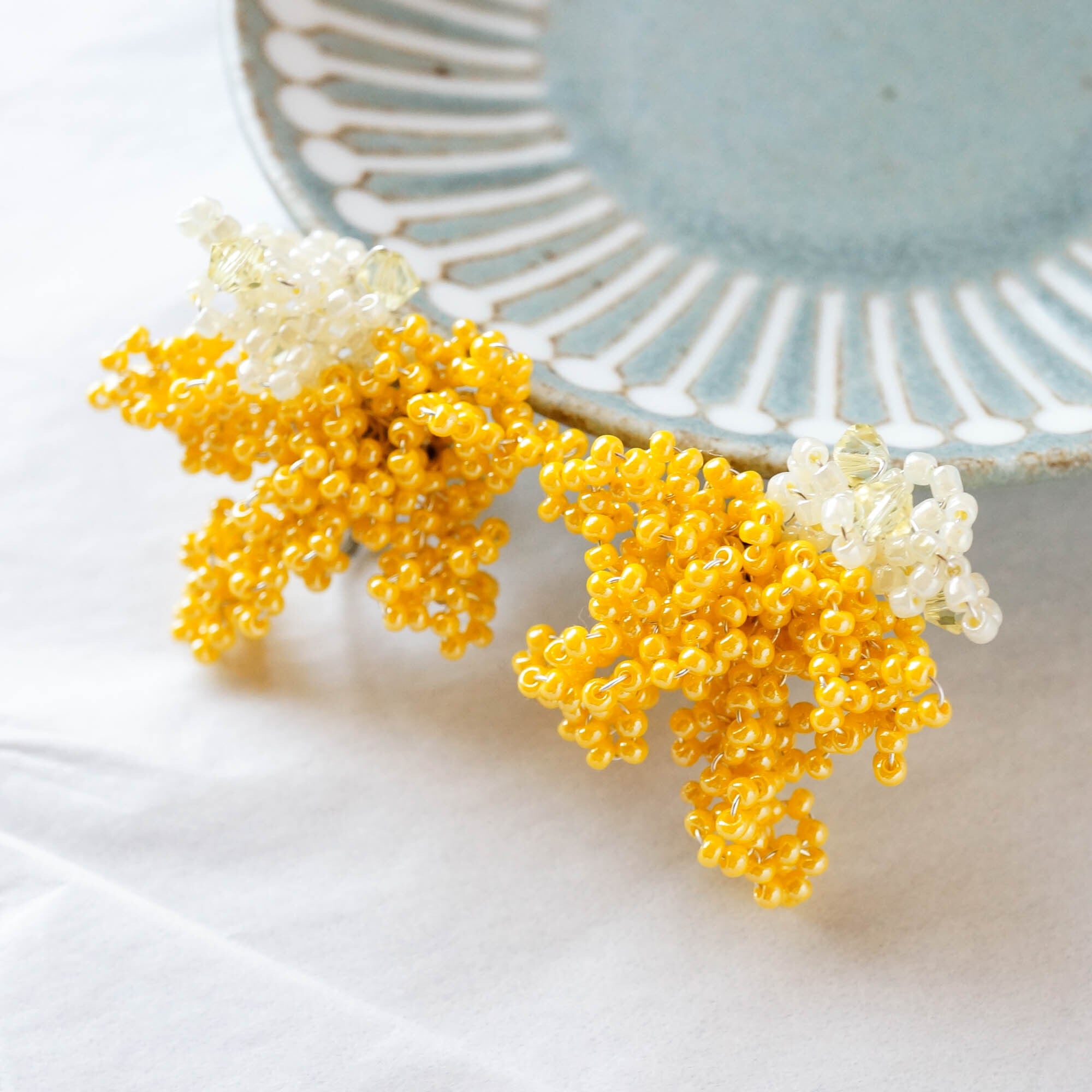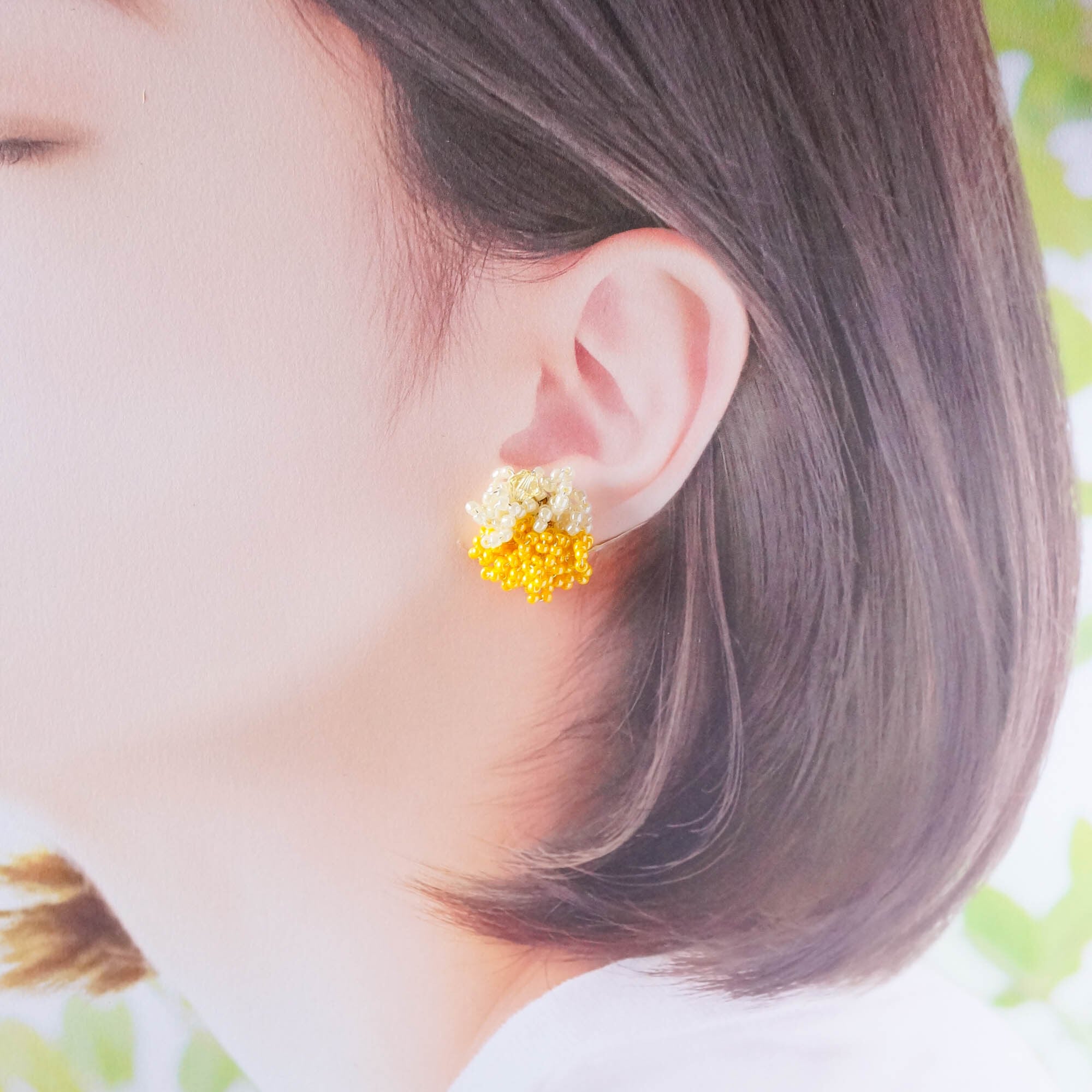 花たちの彩りを大胆な色づかいで表すKukkaシリーズ「こんもりミモザのイヤリング」