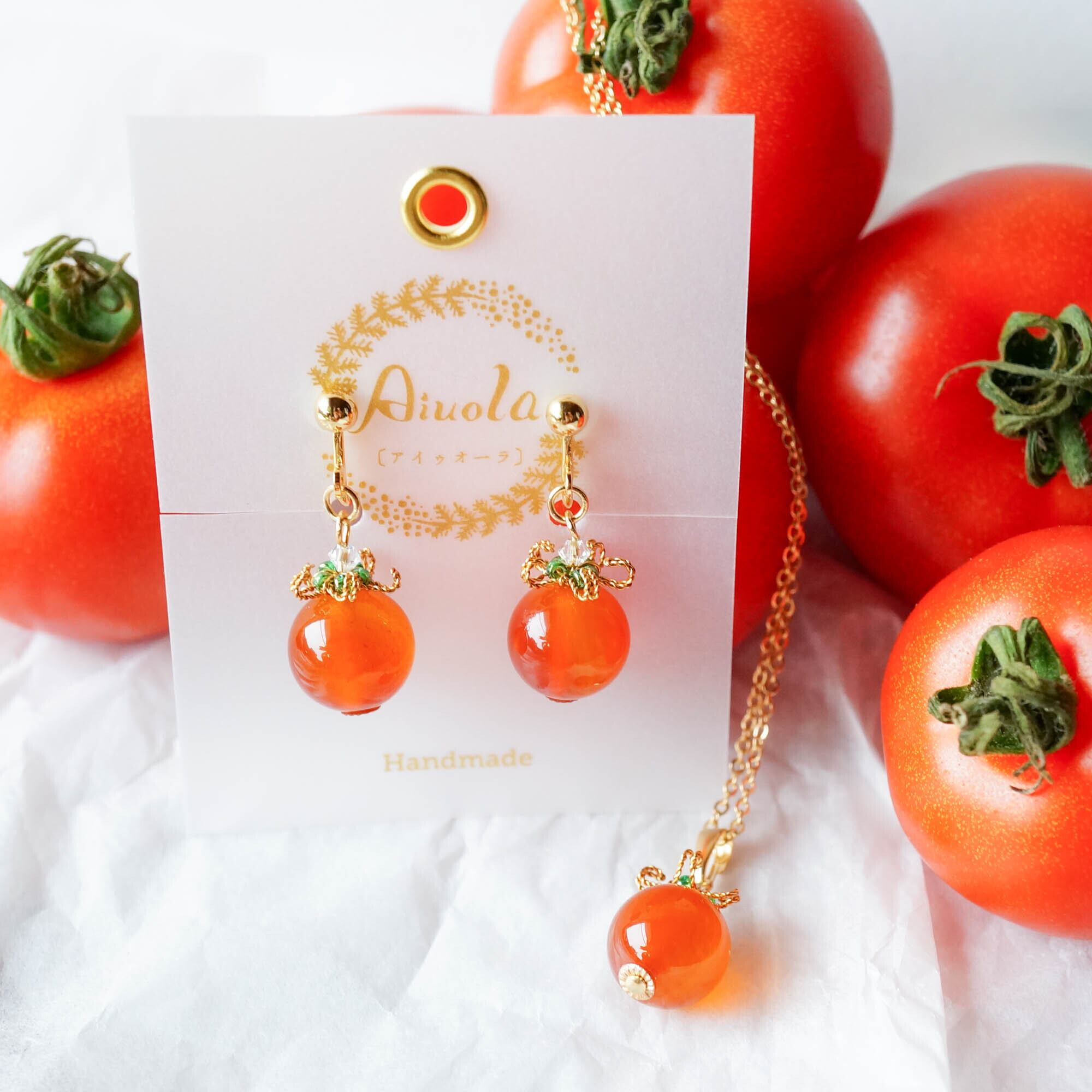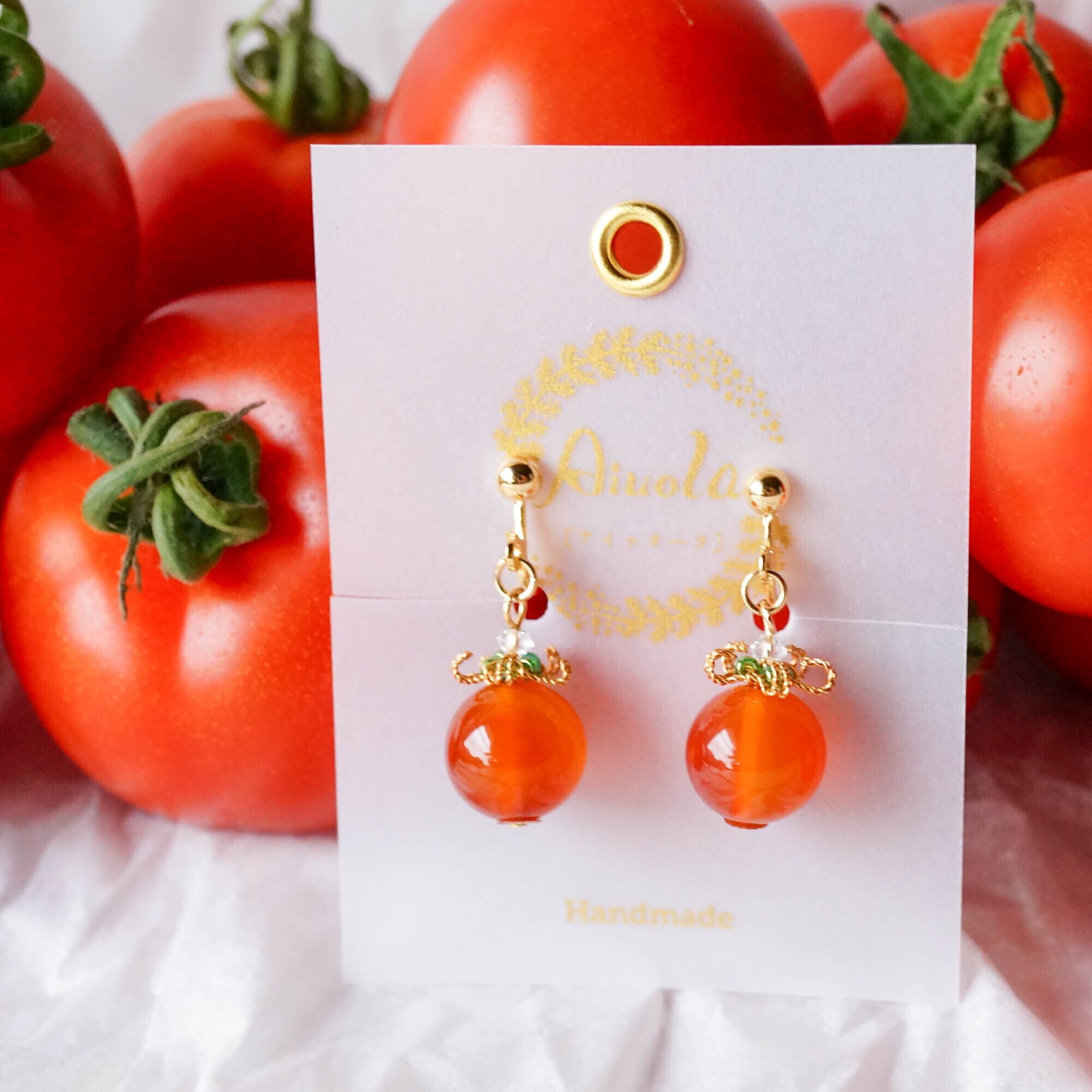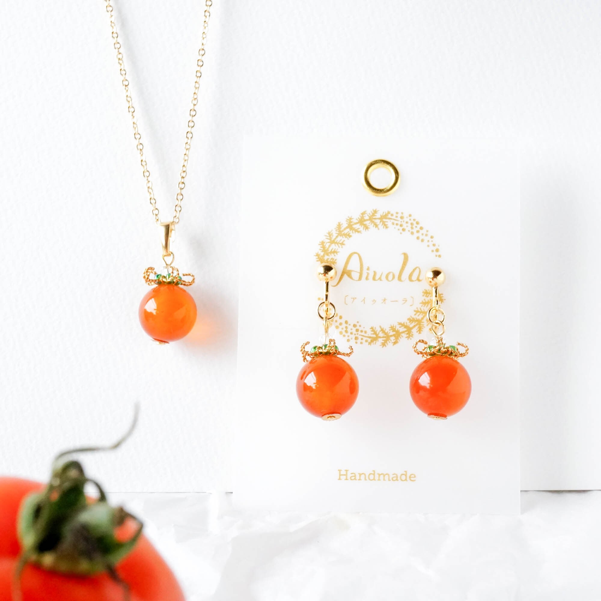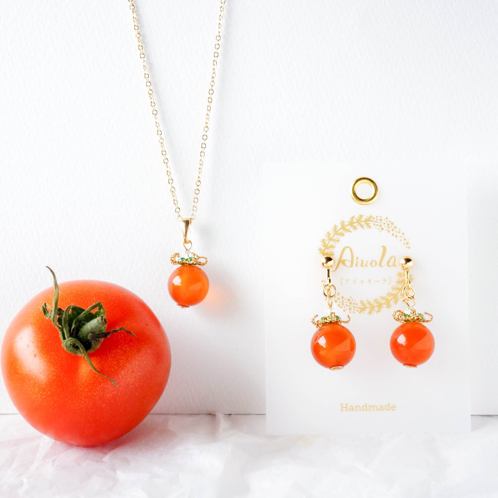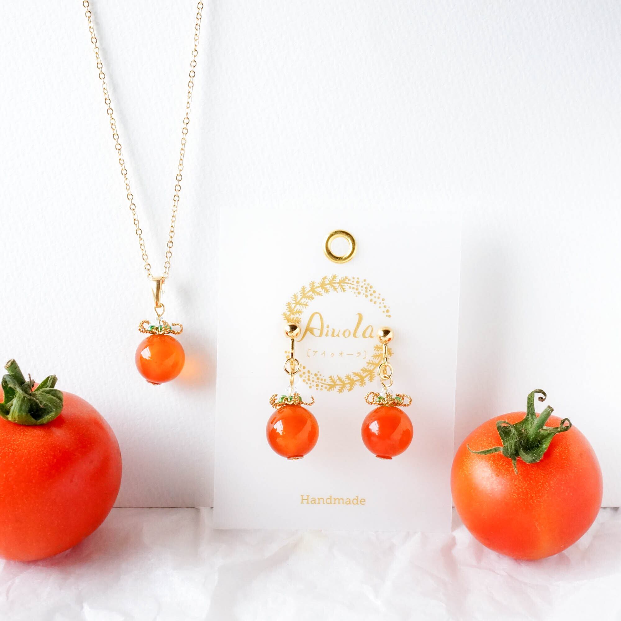 大粒12mmのカーネリアンを、つるんとみずみずしいミニトマトに仕立てました。