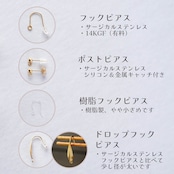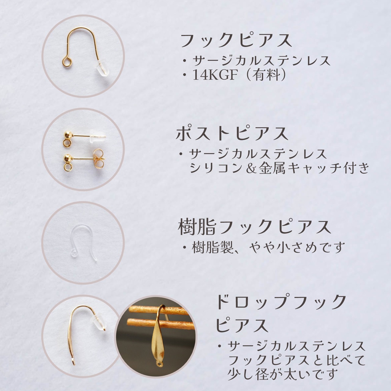 ピアス金具はサージカルステンレスピアス、樹脂ピアスがお選び頂けます。