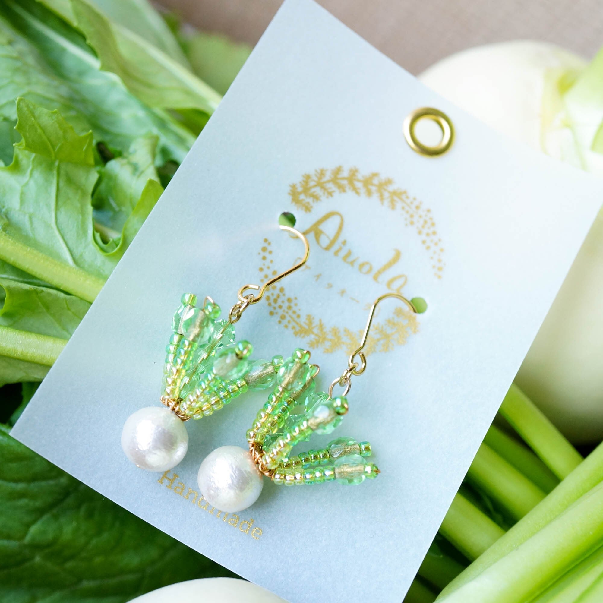 葉っぱの部分は手づくりのオリジナルパーツです。