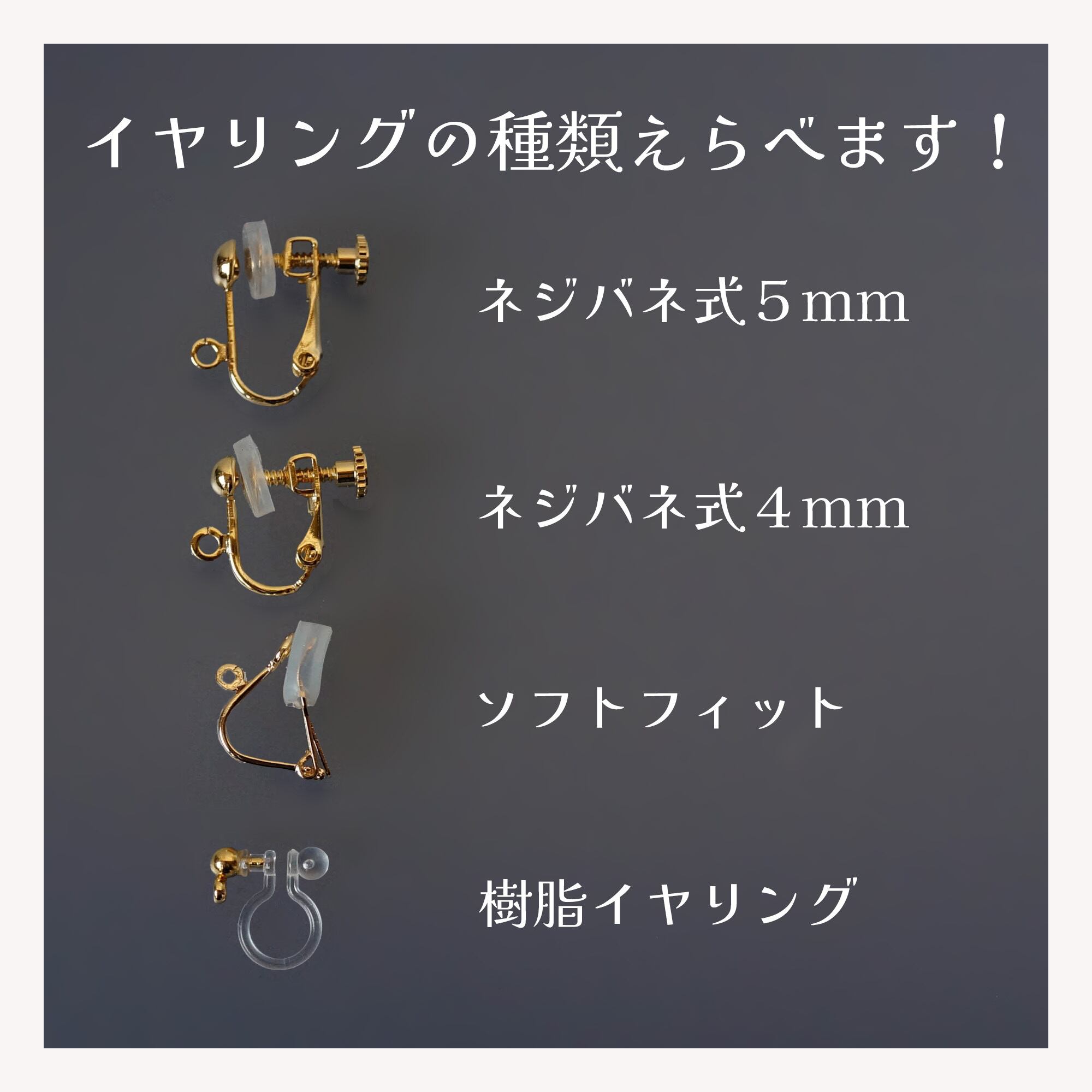 ピアス金具はサージカルステンレスピアス、樹脂ピアスなどのアレルギー対応な金具がお選び頂けます。