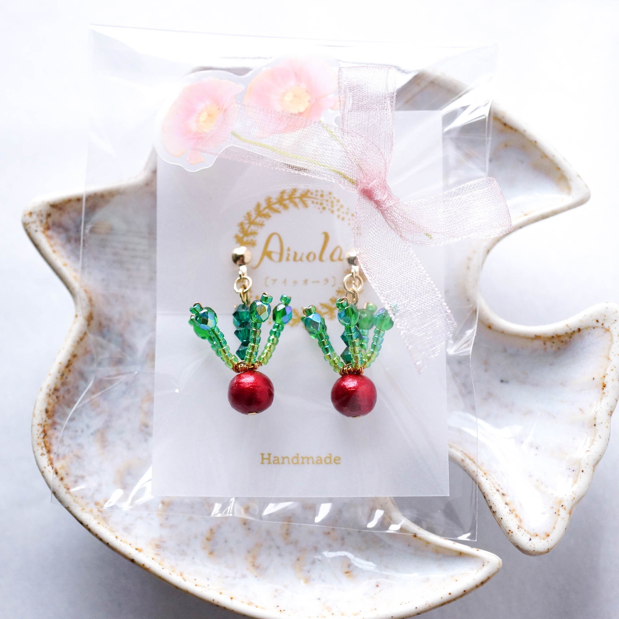 台紙にセットし、OPP袋をかけてささやかですがラッピングをさせていただいております。台紙は異なる場合がございます。
